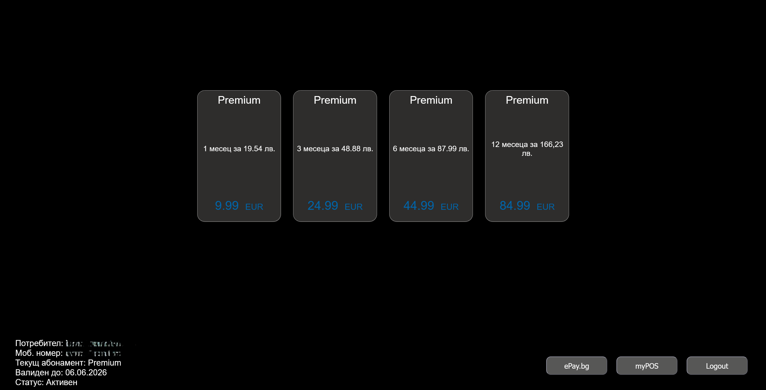 Преди да отидете на каса на EasyPay се уверете, че сте избрали желания пакет от менюто на приложението в секция Профил / Моите абонаменти. След като изберете пакет, вече можете да пристъпите и към неговото плащане.