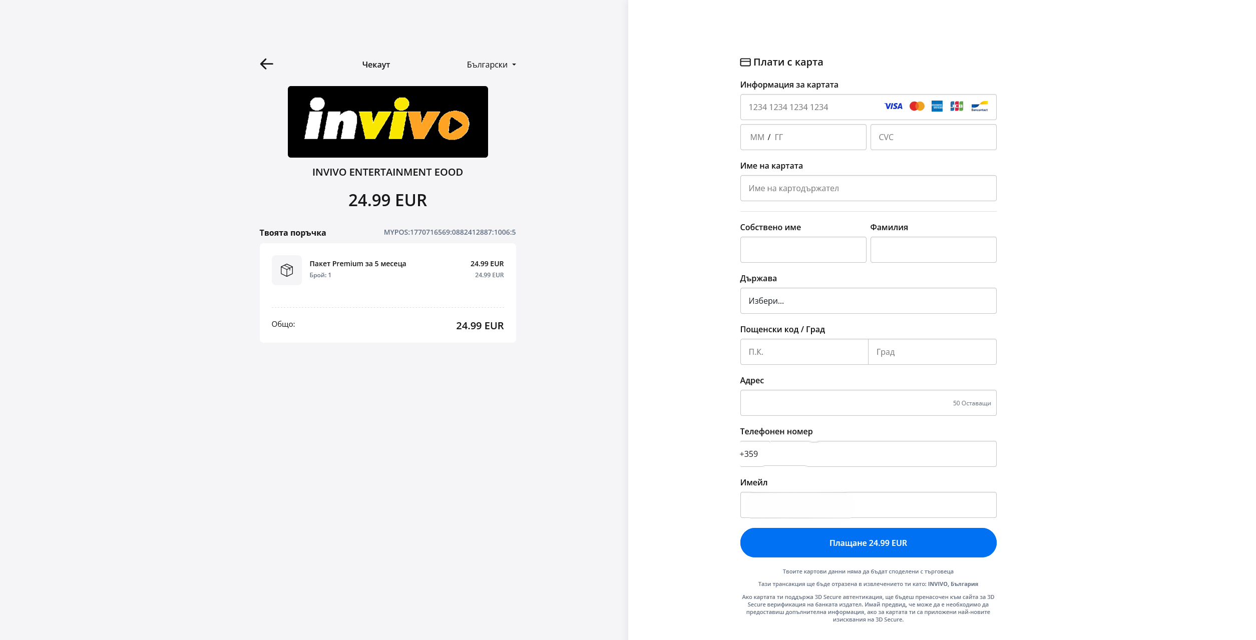 - Плащане през ePay.bg